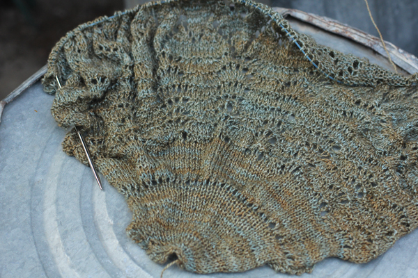 The old shale scarf is a hard call to make. It is a variegated yarn that has been knit in a way where the colors line up. I'm a little worried that the scarf will be too short. It's pretty wide, so I'm thinking about going up 2 needle sizes to make it longer and narrower. But this means that I get to figure out how many stitches will make the colors line up.... again. I'm not too enthusiastic about do the set up again. Unfortunately, having a too-short scarf is also a poor alternative to continuing on. My goal for this one during the KAL is to make up my mind on what to do with it.